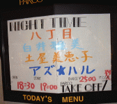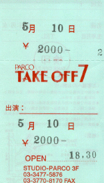 I'm not much of a fan of rock band music, so I can't comment on the music that much. Of course if Mieko wasn't there, I would never have gone. Give me idol songs any day! Unfortunately, Mieko was sick or something, and her throat was pretty bad. Her voice was barely audible during the songs, and when she talked she sounded like a different person. Visually, Mieko had her hair in twin tails off to the sides, and she was jumping around a lot, making her tails flop around a lot. Very cute. (^_^; But Mieko was wearing jeans, her clear orange Heart Chu high heels, and a white sleeveless top. Also they let people in by the order they lined up, instead of ticket number! Since I had ticket number 2, this was very annoying.. The reason was because each band had sold tickets separately, so they didn't have unique numbers. The songs by Happy Park were as follows.