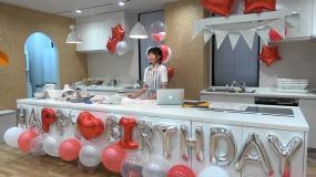 This was a birthday special broadcast of Oshiete Maiko-sensei by Nomura Maiko. It was Maiko's 25th birthday. Maiko was in a kitchen studio, which was decorated with many birthday balloons. This was the first broadcast that Maiko did by herself. Maiko was going to make a cake. Maiko started by reading many mails. Then she made the marron cake.