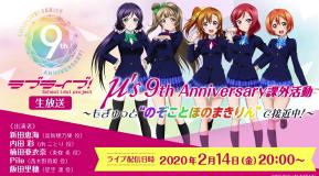 This was a live broadcast by the seiyuu of Love Live for the 9th Anniversary of Love Live. The seiyuu were Nitta Emi, Uchida Aya, Kusuda Aina, Pile, and Iida Riho. They opened by saying "Happy Valentine". They showed three bottles of "jinja ale" (ginger ale) drinks, that will go on sale at Kanda Myoujin Jinja. The bottles have the Muse characters on them. They talked about and showed some pictures of the Love Live Fes that took place on 1/18 and 1/19.