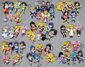 Sailor SwingsThese dolls are sold in the capsule vending machines at many toy stores, for 200 yen each. The machines are set to dispense the capsules randomly, so it was hard to get complete sets.